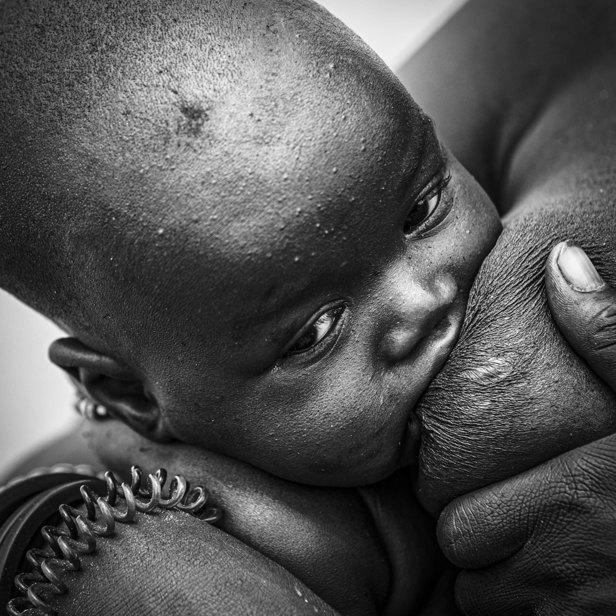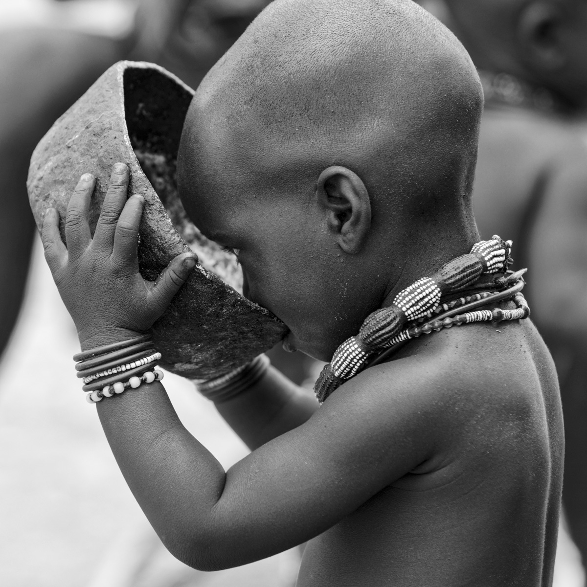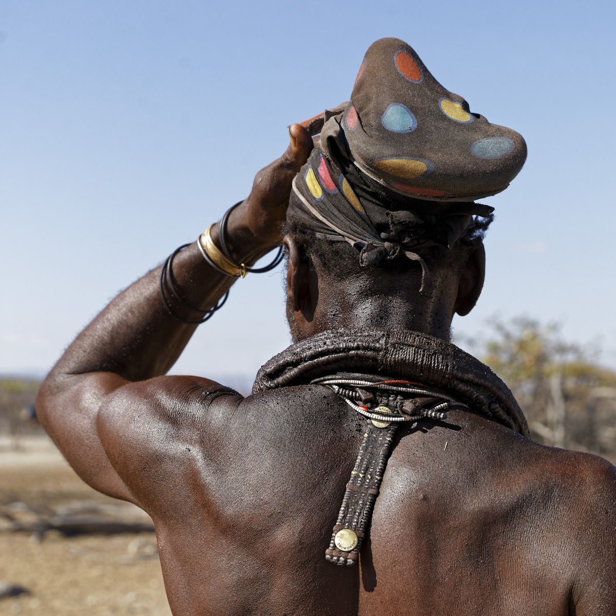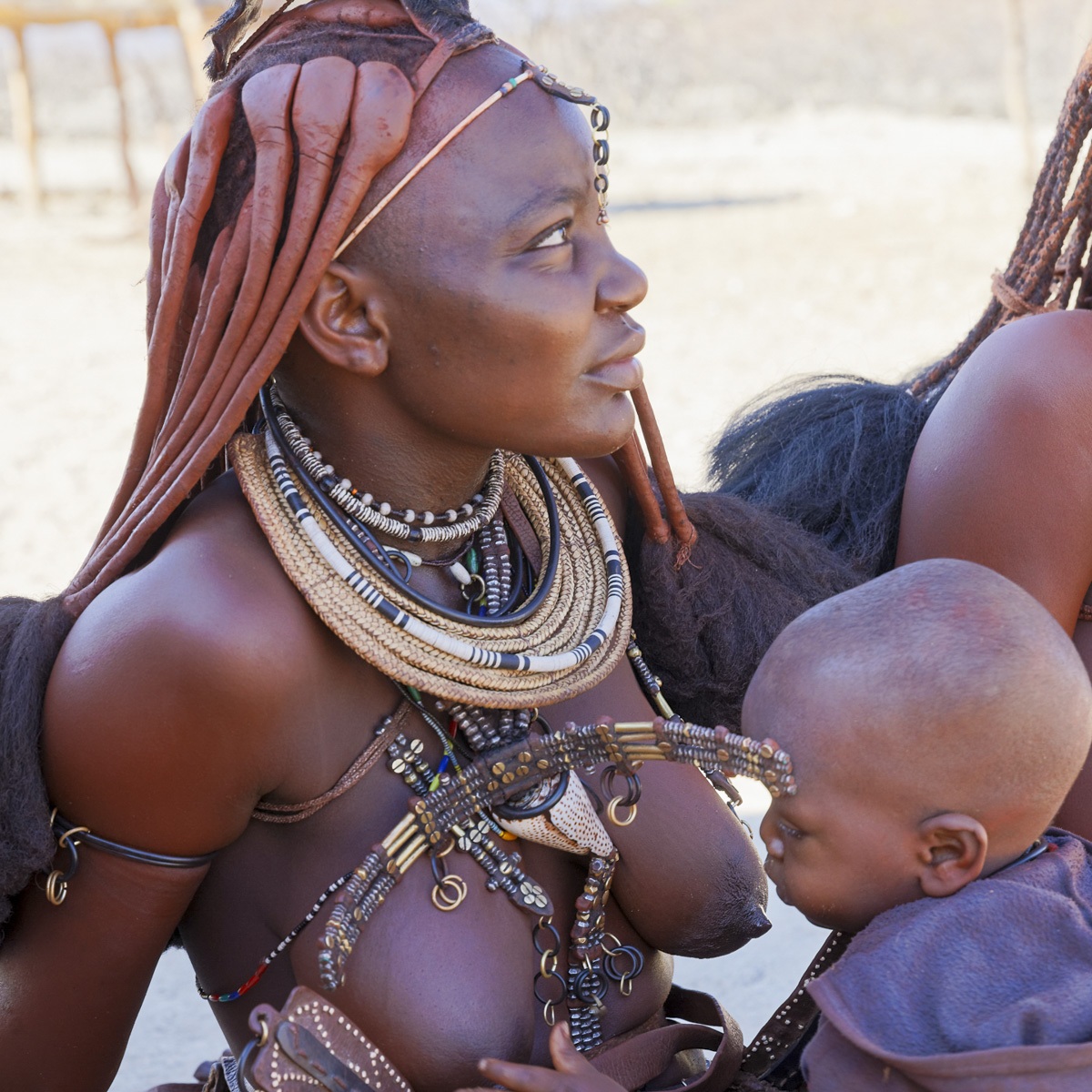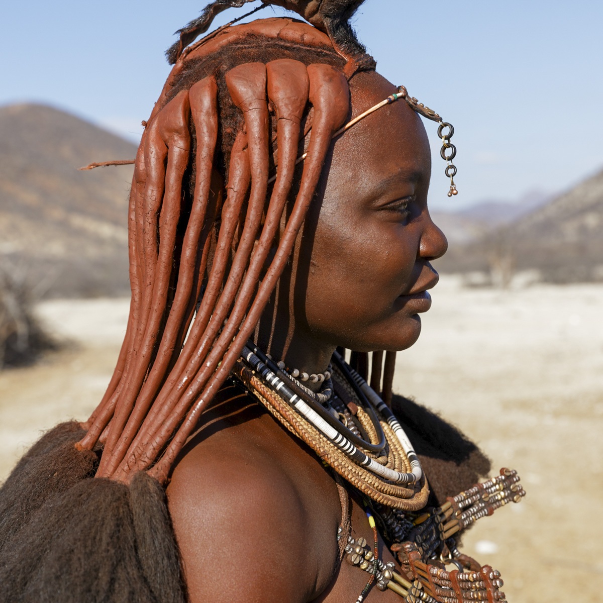 Rencotre d’une tribu Himba. Les femmes Himbas ne se lavent jamais à l’eau, leur toilette se limite en des fumigations de fumée aromatisée d’écorces odorantes. Ce rituel quotidien effectué, elles s’enduisent le corps d’une poudre d’hématite ocre mélangée avec du beurre. En plus d’hydrater leur peau, cette pâte les protège des insectes et du soleil.