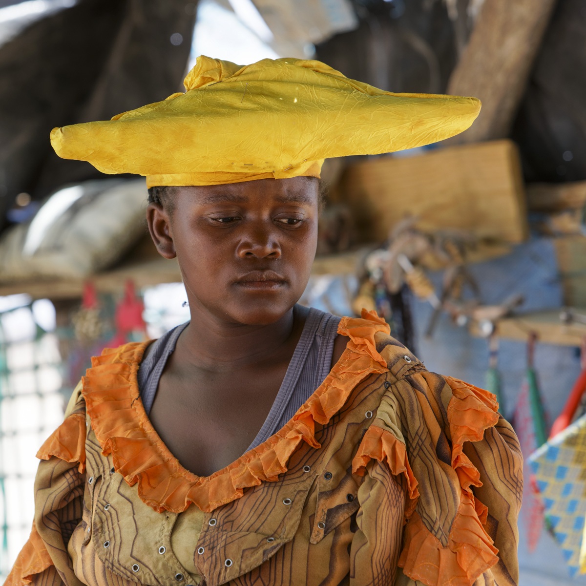 Les femmes Himbas restent au campement pendant que les hommes emmènent paître leurs troupeaux.